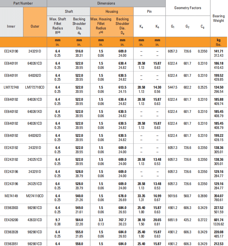 | Max. Shaft Fillet Radius R(4) | Backing Shoulder Dia. db | Max. Housing Fillet Radius r(4) | Backing Shoulder Dia. Da | Ka Kb | G1 | G2 | Cg | |||||