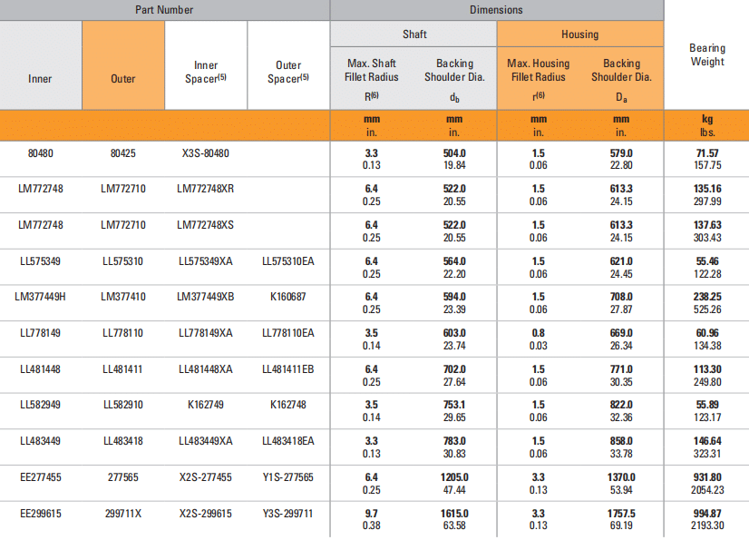| LL575349 | LL575310 | LL575349XA | LL575310EA | 6.4 0.25 | 564.0 22.20 | 1.5 0.06 | 621.0 24.45 | 55.46 122.28 |